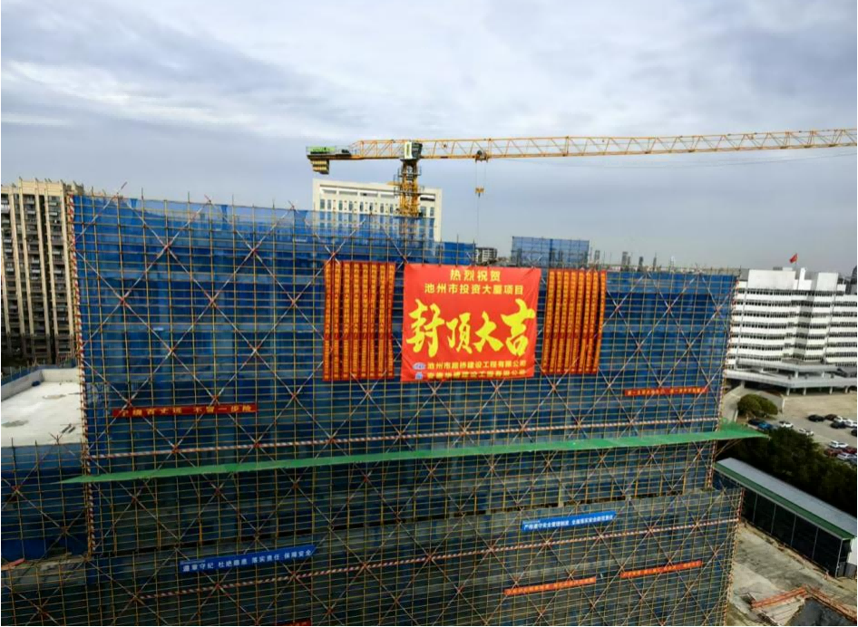 萬(wàn)丈高樓平地起,一磚一瓦見(jiàn)匠心。從一片黃土到喜封金頂,歷經(jīng)10個(gè)月的精雕細(xì)琢,集團(tuán)所屬路橋公司自籌自建的池州市投資大廈項(xiàng)目迎來(lái)新節(jié)點(diǎn)——主體結(jié)構(gòu)順利封頂,現(xiàn)已全面進(jìn)入砌筑工程及裝飾裝修施工階段。